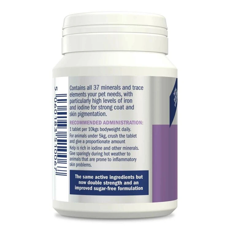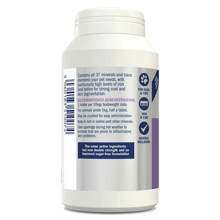 Keep your dog in peak condition by providing all 37 of the minerals and trace elements that they need with our Kelp Seaweed Tablets. This is our highest strength kelp seaweed product, and is now double concentration for maximum effect. With naturally high levels of iron and iodine for strong coat and skin pigmentation, these tablets are perfect to help keep your pet looking their best and can also be useful for dogs with conditions that may benefit from supplementation with these specific minerals.