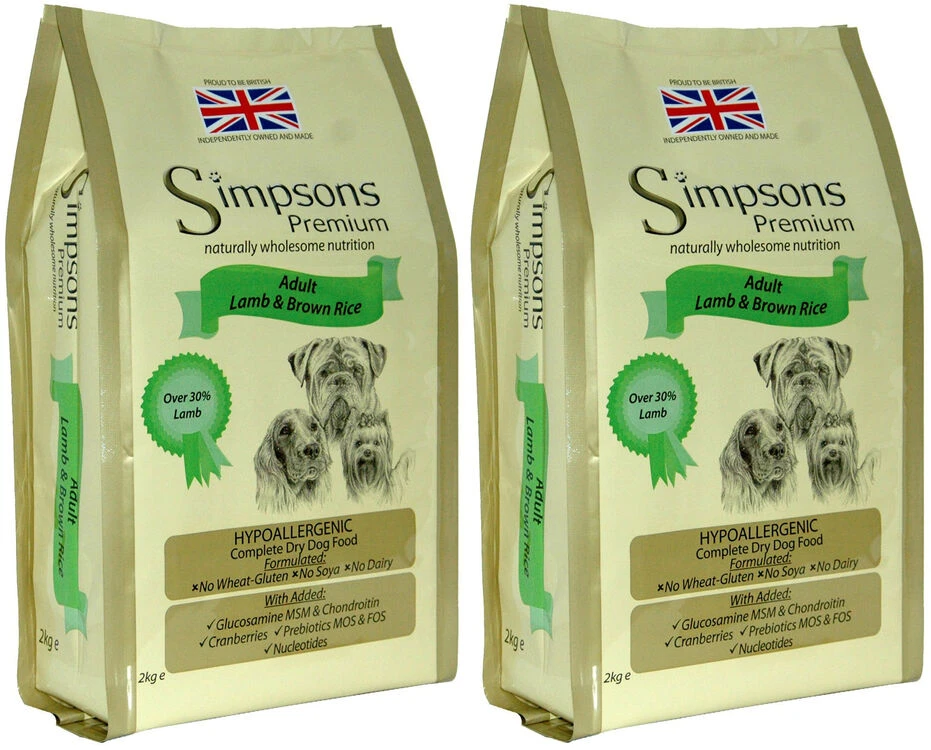 Simpsons Premium Adult Lamb & Brown Rice Dry Dog Food is perfect for dogs who have allergies to certain foods and for those who often suffer from digestion issues and irritable skin. It has been designed to be 100% hypoallergenic, in a wheat, gluten and dairy free recipe that also tastes great.